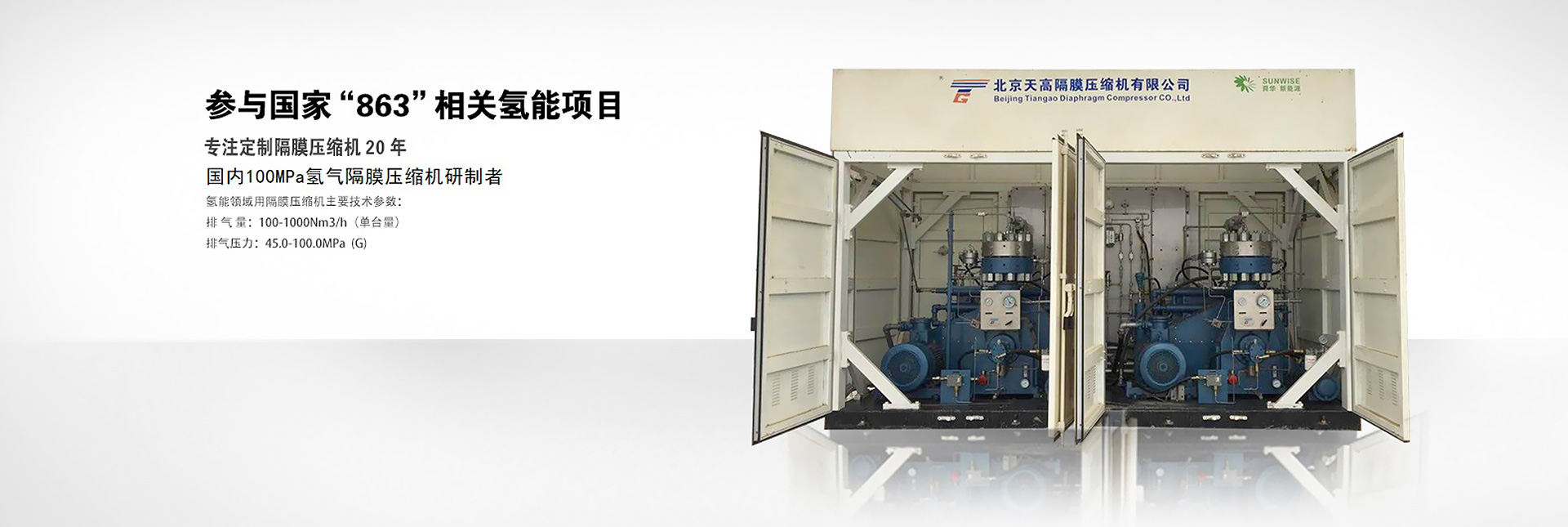 北京天高隔膜压缩机有限公司创建于2001年4月,公司主要从事隔膜压缩机产品研究开发及制造,在高压领域拥有丰富的经验,目前已开发了十几个系列,千余种产品。公司于2002年通过了ISO9001-2008质量管理体系认证;公司还参与了国家科技部环保新能源“863”计划中的汽车加氢项目,产品运用在国内近十座加氢站的项目上。公司秉承用户满意是我们的承诺,继续致力于技术开发和高压产品领域的发展。